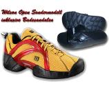 Sichern Sie sich jetzt noch eines der letzten Paare dieses sensationellen Restpostens des Wilson Open als Sondermodell in schwarz/rot/gold! Der ehemalige unverbindliche Verkaufspreis des Herstellers liegt bei 149,95 €. Dieses Modell vermittelt Ihnen ein sagenhaftes Tragegefühl da das Obermaterial komplett aus Stofftextur gearbeitet ist. Es passt sich Ihrem Fuß bei jeder Bewegung genau an und vom Abrollen ist so gut wie nichts mehr zu spüren. Die Gummierung ist seitlich und im Zehenbereich extra weit hoch- gezogen um schnellem Durchscheuern an den Verschleißstellen entgegenzuwirken.