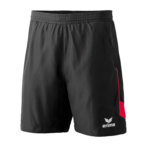 Erima Short* Farbe: schwarz/ rot* Material: 100% Polyester* Innenfutter: 100% Polyester* Gummibund mit Kordel* seitliche Eingriffstaschen* Einsätze aus Mikrofaser-Struktur