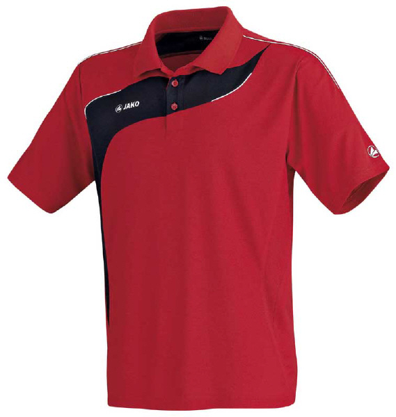 Jako Polo* Farbe: rot/ schwarz* Material: 100% Polyester* direkter Feuchtigkeitstransport nach außen* formstabil und schnell trocknend