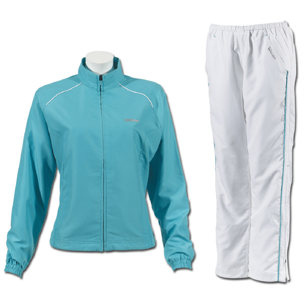Wilson Damen Anzug* Größe: XS, M-XL * Farbe: aqua blau/weiß* Obermaterial: 100% Polyester* Futter: 100% Polyester* leichtes, atmungsaktives Material* optimal zum warm-upVersandfreie Lieferung für alle Wilson Damenteile!!!!
